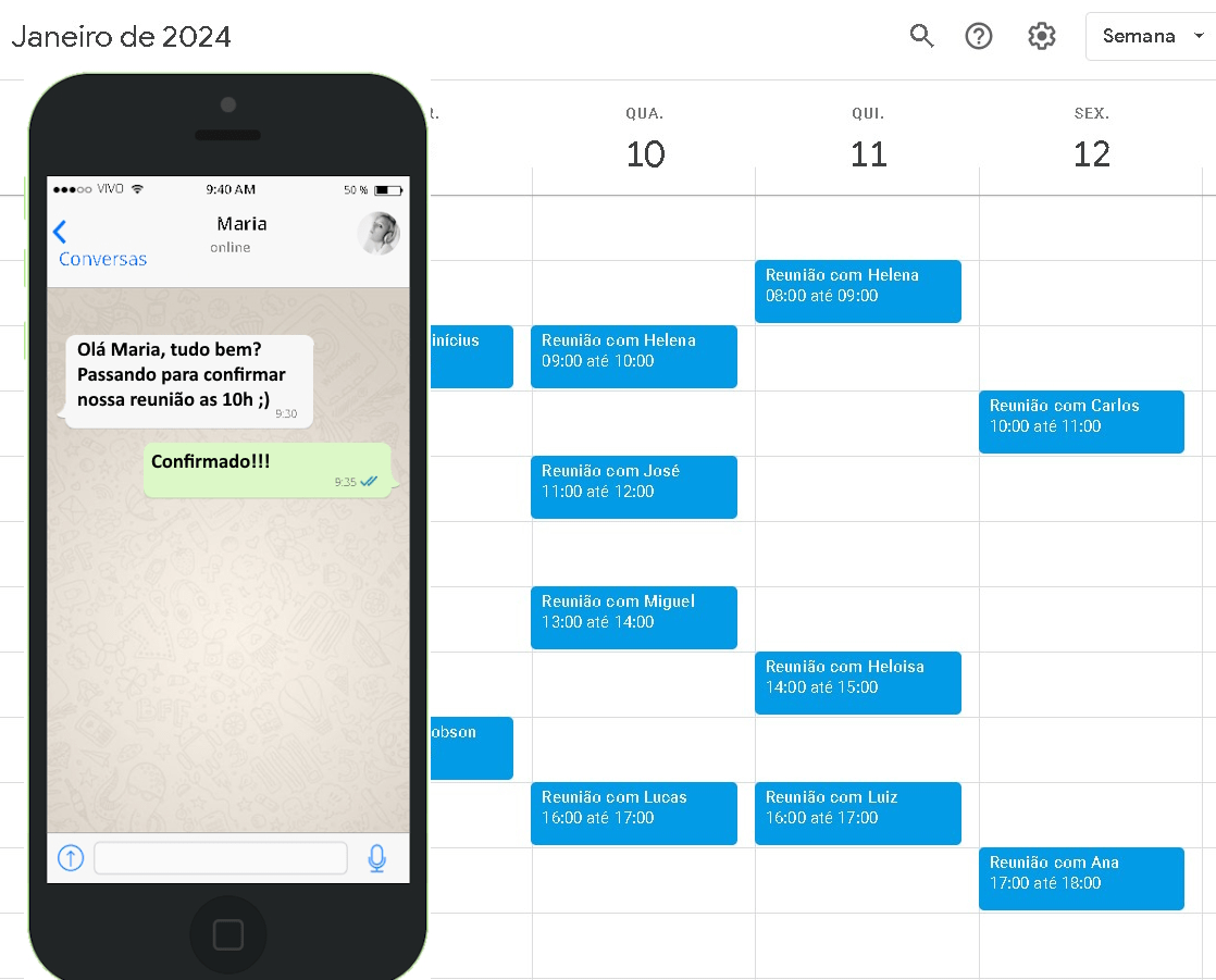 Uma vez integrado ao seu Google Agenda, o ConfirmeAgenda envia automaticamente lembretes pelo Whatsapp para todos os envolvidos no agendamento, garantindo pontualidade e prontidão.
